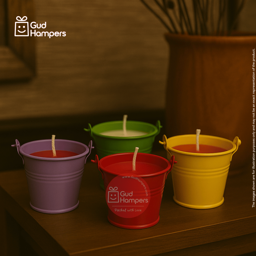 A creative blend of tradition and quirk, this set of 4 mini balti (bucket-shaped) candles brings playful Indian nostalgia into your home or gift boxes. -