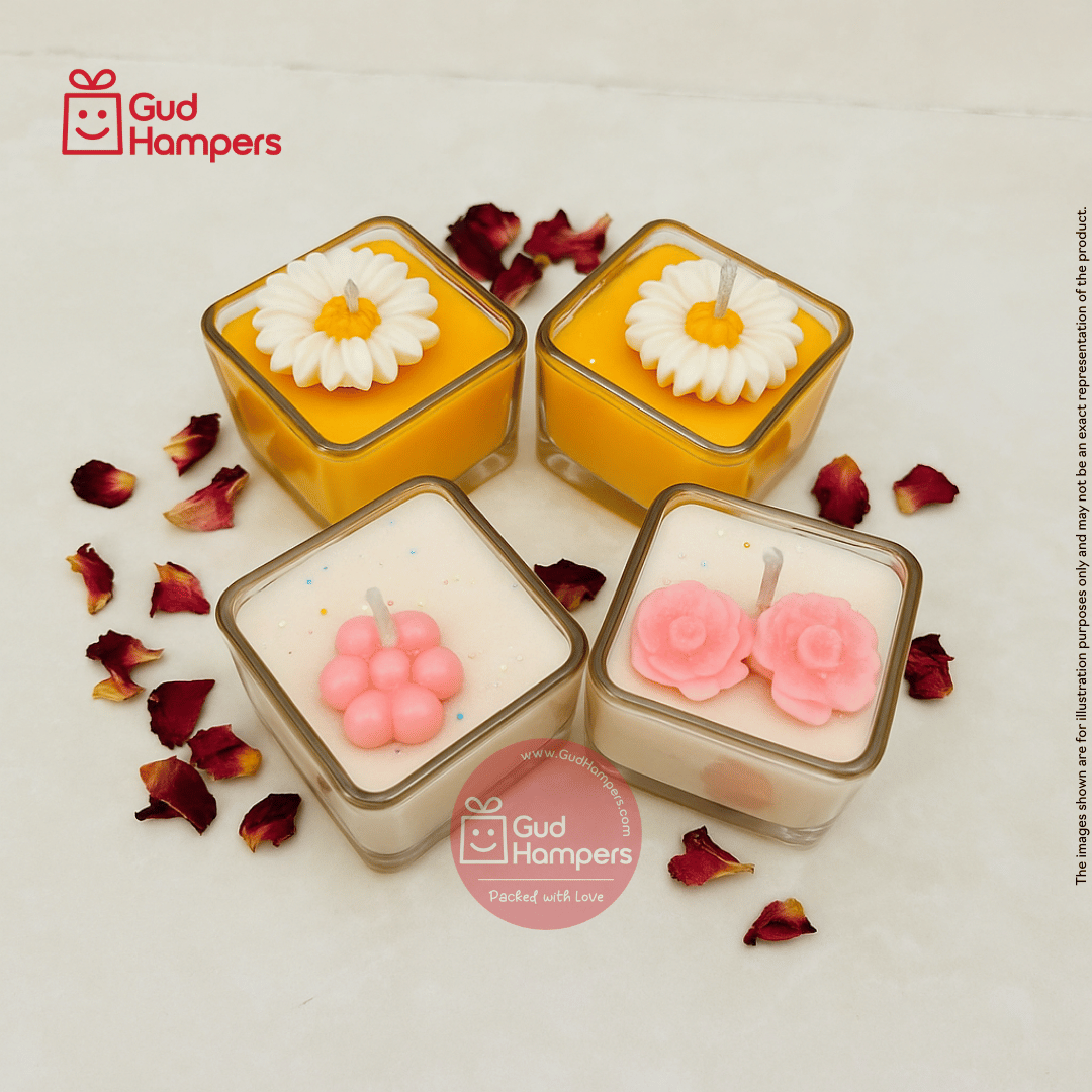 MINI SQUARE CANDLES WITH FLOWERS (SET OF 4)