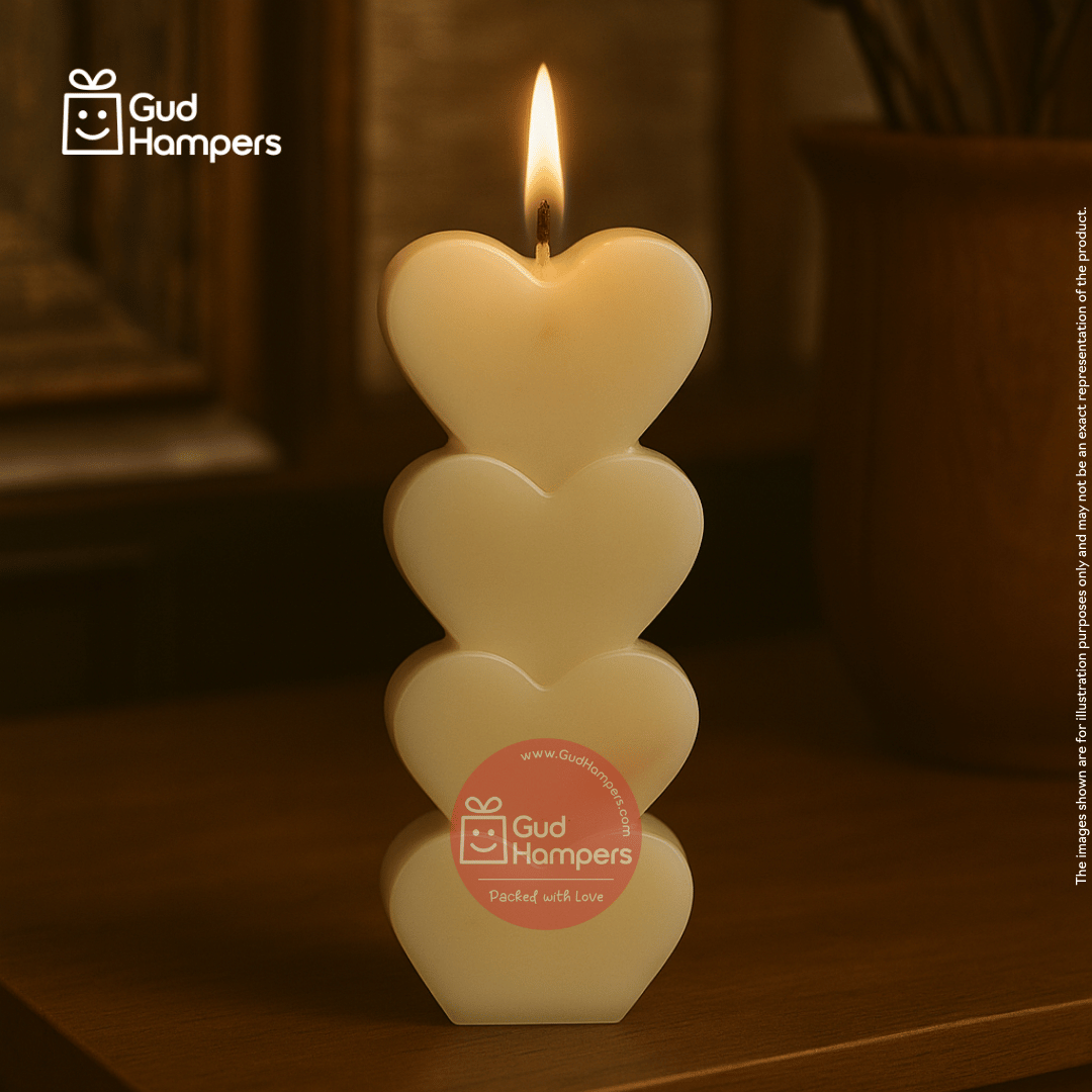 This candle features a beautifully aligned stack of hearts, bringing a romantic and aesthetic appeal to any space. -